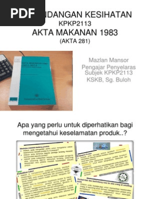 Akta Makanan 1983 Akta 281 Dan Peraturan Peraturan Makanan 1985 Matarz Wanz Blog