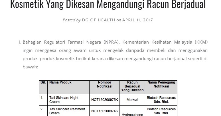 Produk Produk Kosmetik Yang Dikesan Mengandungi Racun Berjadual Oral Health Programme Ministry Of Health Malaysia