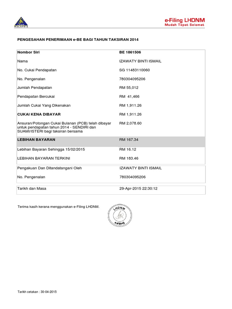 Lhdn 2015 Pdf