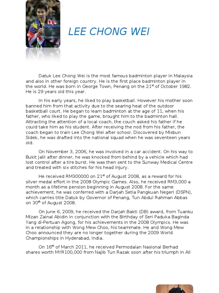 Lee Chong Wei S Background And Achievement Malaysia Study