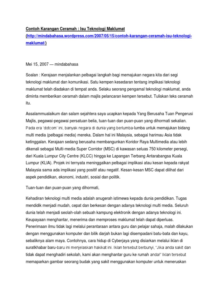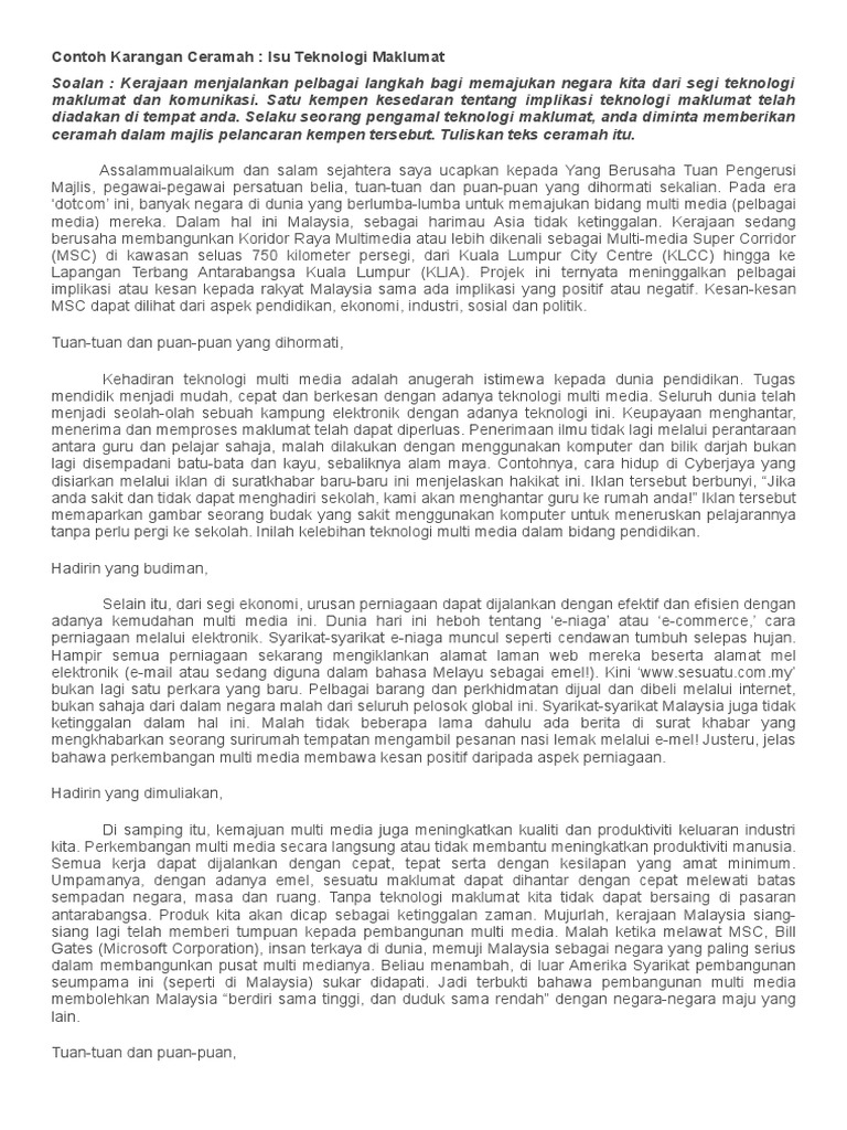 Contoh Karangan Ceramah Isu Teknologi Maklumat