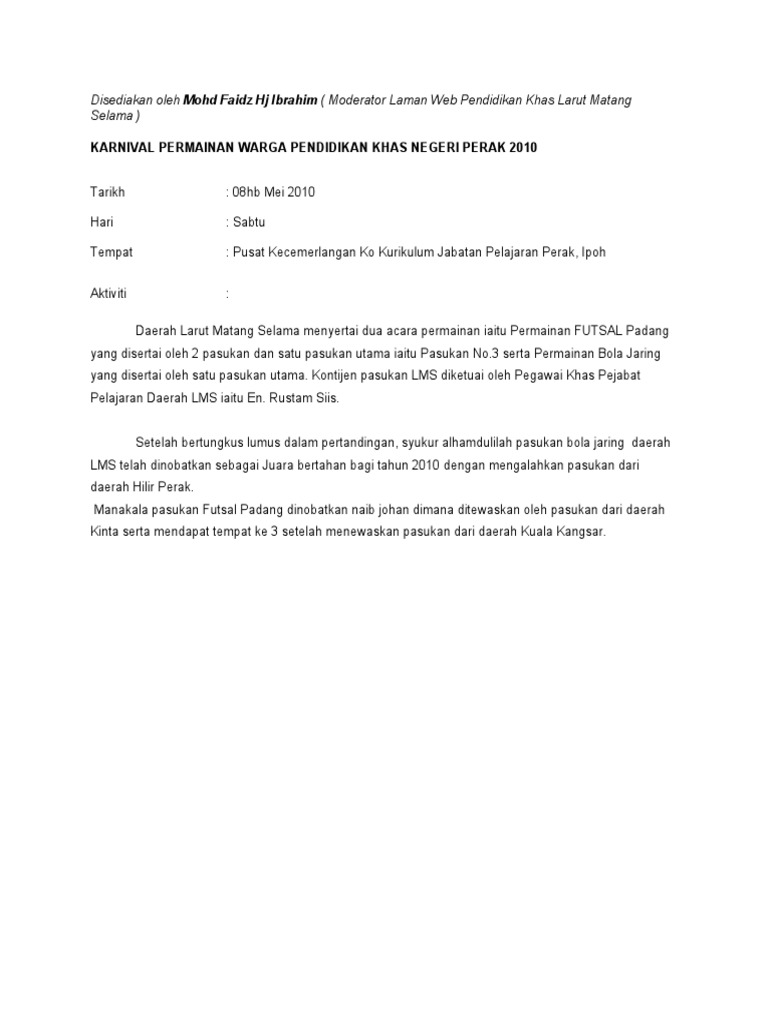 Prasekolah Daerah Batang Padang Acara Dan Syarat Syarat Pertandingan Bijak Prasekolah Negeri Perak 2015 Borang Penyertaan 1
