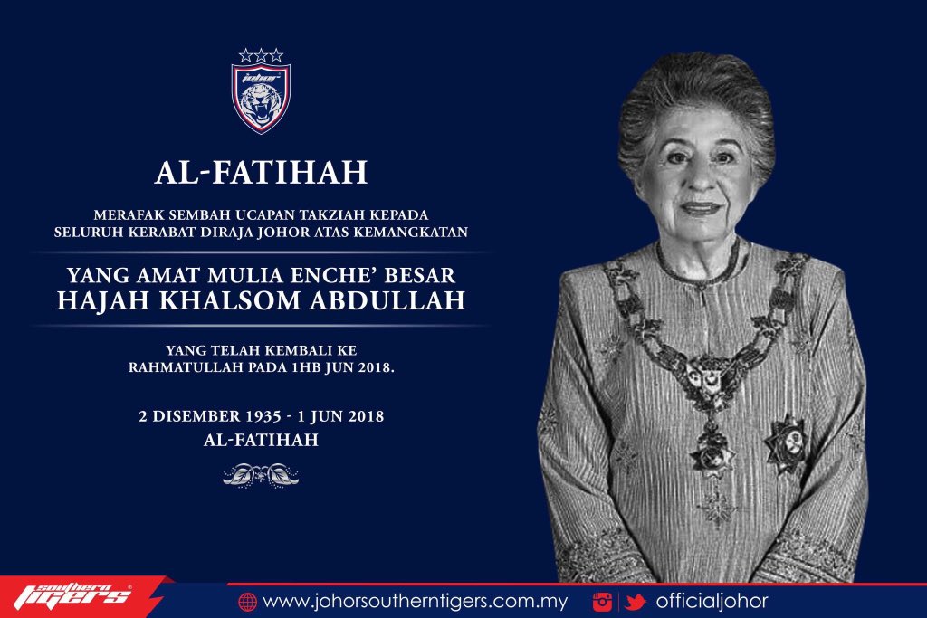 Johorsoutherntigers Di Twitter Our Deepest Condolences To The Royal Family Of Johor On The Passing Of Hrh Enche Besar Hajah Khalsom Abdullah Who Passed Away On 1st June 2018 Al Fatihah Https T Co Isk8rlmg5a