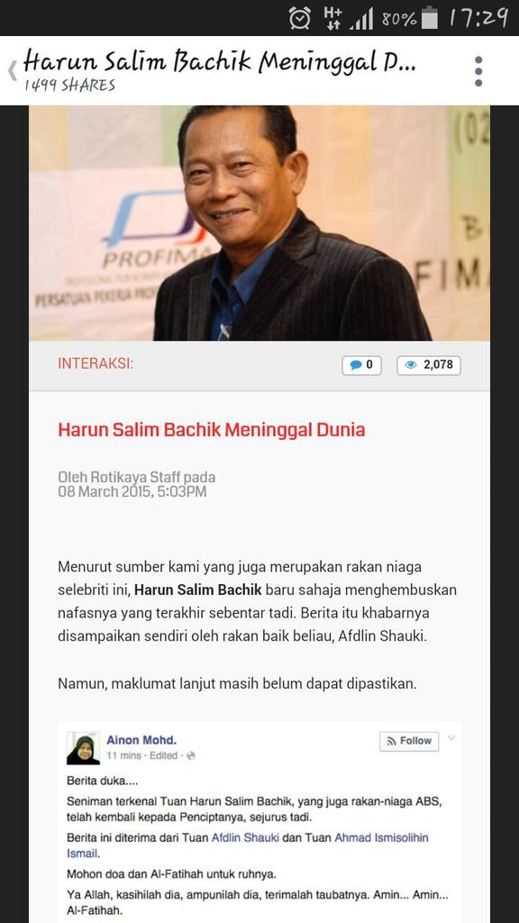 Tomok On Twitter Al Fatihah Rt Rotikaya Http T Co 1fxqguyk8p Harun Salim Bachik Meninggal Dunia Al Fatihah Http T Co Aunaddrejf
