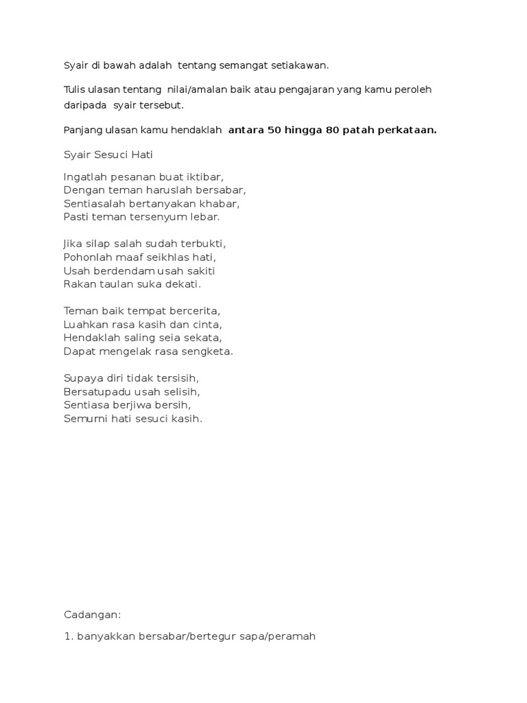 Justeru marilah kita mengekalkan perpaduan dan keamanan negara dan janganlah kita membiarkan pengorbanan orang sebelum kita menjadi sia sia katanya. Hr ahmad 21129. Sumber anda dinasihatkan memastikan ketulenan tugasan dan tidak memplagiat dengan mengambil atau meniru tugasan hasil kerja daripada mana mana pihak seperti di blog blog lain yang tidak mempunyai sumber asal yang sahih. Pendidikan adalah nadi kehidupan.