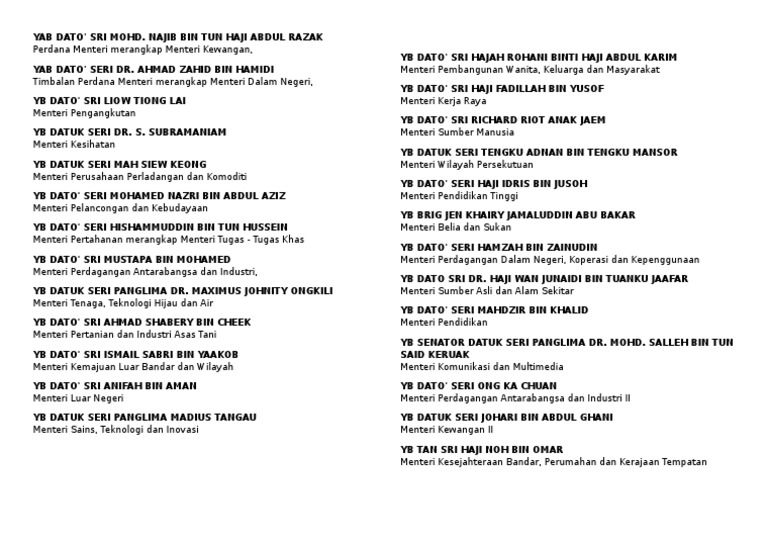 Senarai Penuh Barisan Menteri Dan Timbalan Menteri Malaysia 2020