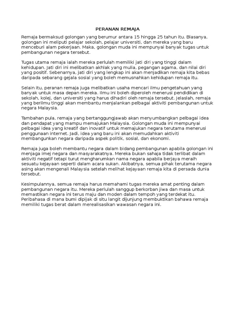 Peranan Remaja Dalam Membangunkan Negara Download Docx