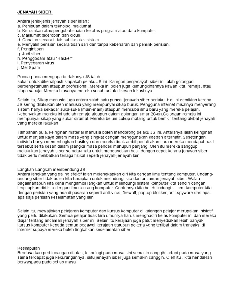 Jenayah Siber Docx 1 0 Pengenalan Pada Era Globalisasi Ini Kemajuan Sains Dan Teknologi Telah Mendatangkan Dan Memberi Kesenangan Dalam Melakukan Course Hero