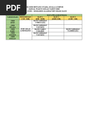 Smk Seri Bintang Utara Kuala Lumpur Jadual Waktu Kelas Tahun 2020 Nama Guru Mohamed Alasraf Bin Shaik Daud