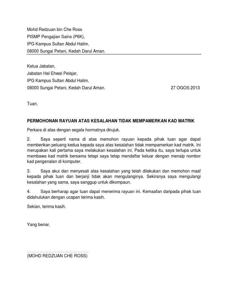 Contoh Surat Rasmi Tunjuk Sebab Datang Lewat Kerja Ke Joglo