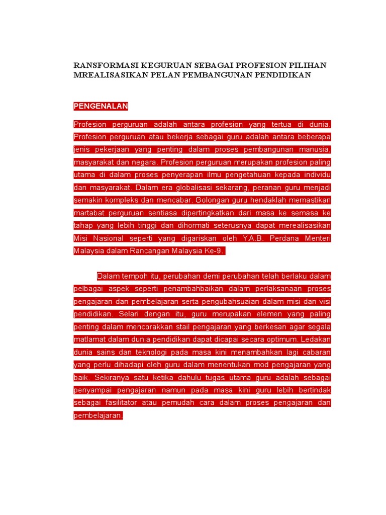 Ransformasi Keguruan Sebagai Profesion Pilihan Mrealisasikan Pelan Pembangunan Pendidikan