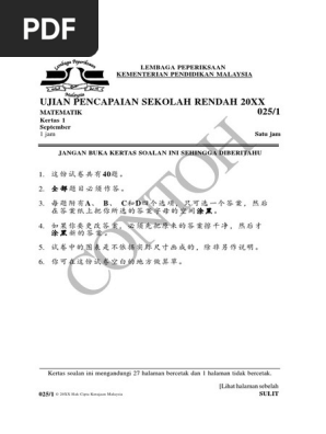 Ujian Pencapaian Sekolah Rendah 20xx 025 1 Matematik